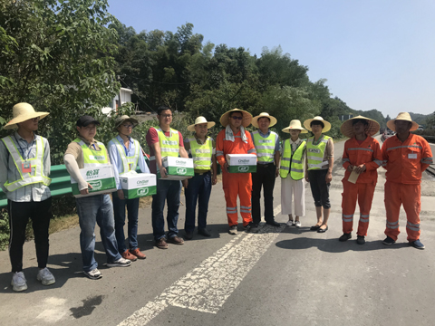 合六葉、六武高速項(xiàng)目業(yè)主單位、監(jiān)管單位以及監(jiān)理單位領(lǐng)導(dǎo)為高速現(xiàn)場(chǎng)施工人員送清涼