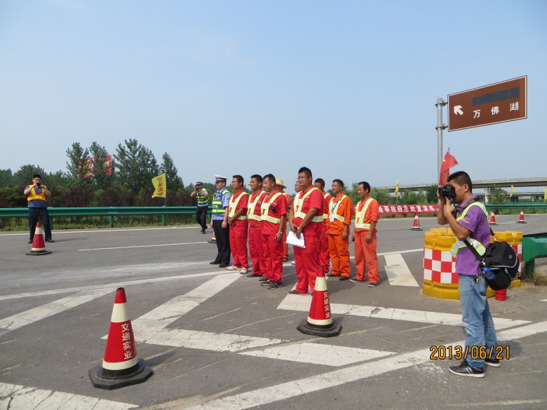 為進一步提高公司應急機制和處置水平, 2013年6月21下午3點在合六葉高速公路大顧店互通施工區(qū)域內進行了突發(fā)交通事故應急演練活動。公司領導、六安高速公路交警一大隊、合六葉高速公路路政大隊及高速公路六安管理公司的相關領導參加了演練活動。