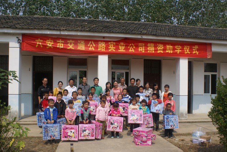 2012年9月19日上午,六安市交通公路實(shí)業(yè)有限公司深入金安區(qū)夏普希望小學(xué)開展“關(guān)愛留守兒童、捐資助學(xué)”活動(dòng)。公司總經(jīng)理萬世林、副總經(jīng)理祁偉力等一行參加了活動(dòng)。此次活動(dòng)共為2名品學(xué)兼優(yōu)、家庭貧困的留守兒童送上助學(xué)金,并為27名留守兒童派發(fā)了一批學(xué)習(xí)用品。