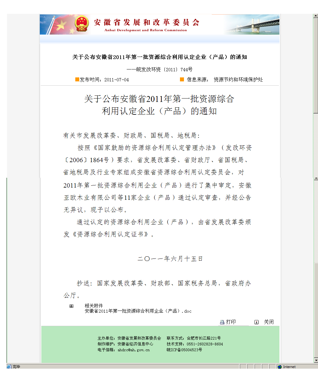 安徽省2011年第一批資源綜合利用